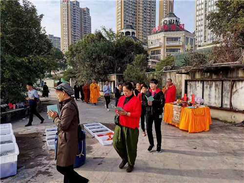 2020年10月31日(农历九月十五日),华严寺举行第八期放生法会。法师携全体僧众在孔目江畔举行放生法会,为众生灵念三皈依、忏悔文、四宏愿、大悲咒、洒净。盼其早脱旁生,永离恶道。并虔诚为所有发心的居士大德祈福回向。
